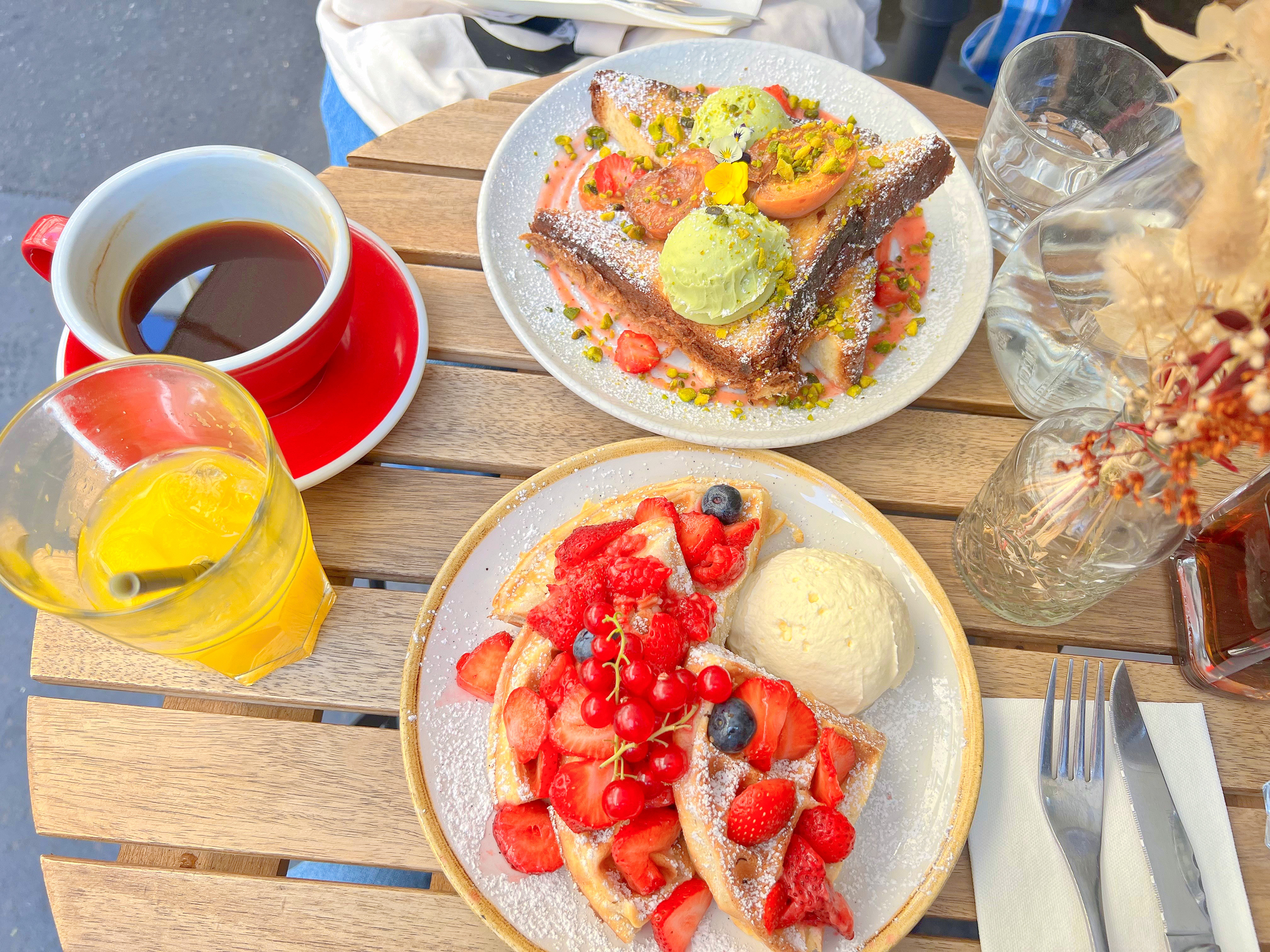 동생이 주문한 메뉴는 FRENCH TOAST(12.5유로)이다. 둘다 맛있었음. 근데 단거 많이 안좋아하면 와플이 나을 듯 하다!